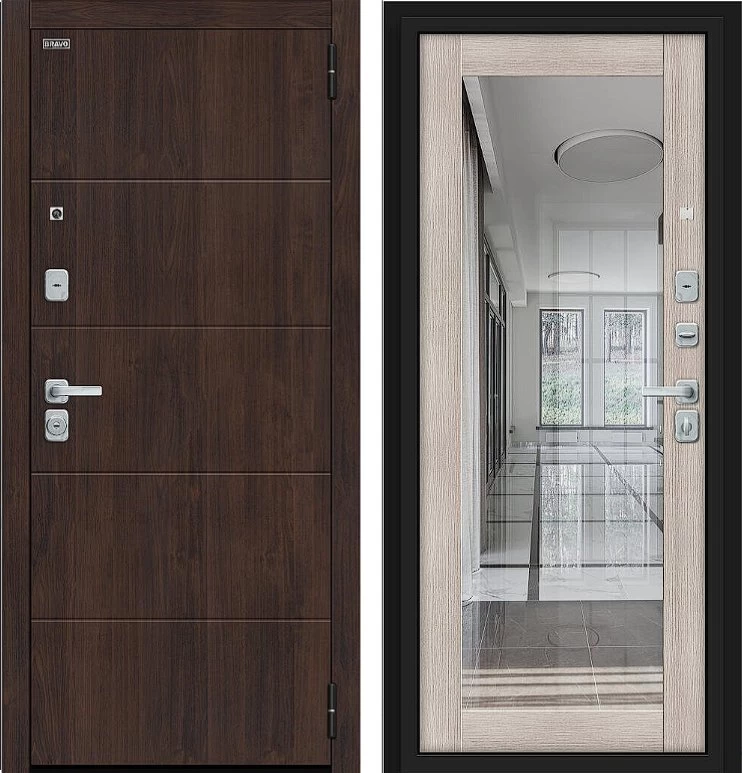 Надежная входная Дверь Браво Флэт/BChrome Almon/Cappuccino Melinga премиум класса по цене 42 363 руб. Большая толщина стали защитит от проникновения в ваш дом, квартиру или коттедж. Используется очень качественная фурнитура: замки, цилиндры, ручки, защелки. Покрытие и отделка двери изготовлено под внимательным контролем производителя. Дверь имеет долгий срок службы и гарантию.