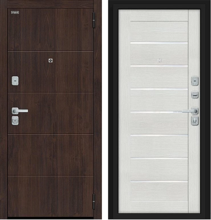 Надежная входная Дверь Браво Прайм/BChrome Almon/Bianco Melinga премиум класса по цене 39 663 руб. Большая толщина стали защитит от проникновения в ваш дом, квартиру или коттедж. Используется очень качественная фурнитура: замки, цилиндры, ручки, защелки. Покрытие и отделка двери изготовлено под внимательным контролем производителя. Дверь имеет долгий срок службы и гарантию.