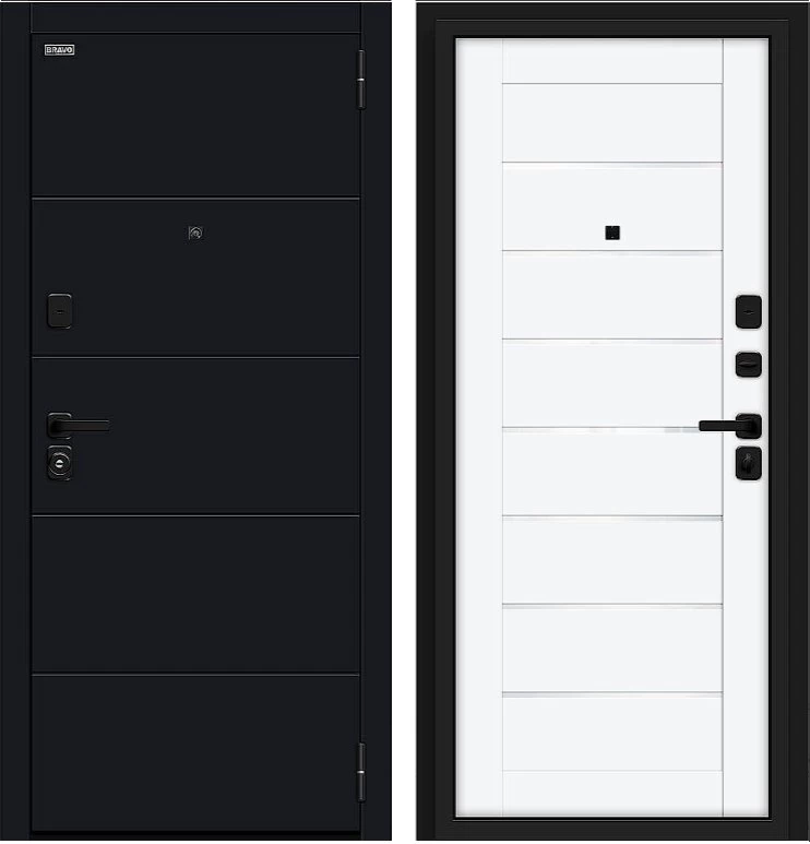 Надежная входная Дверь Браво Прайм/SBlack-Black Shell/White Silk премиум класса по цене 39 963 руб. Большая толщина стали защитит от проникновения в ваш дом, квартиру или коттедж. Используется очень качественная фурнитура: замки, цилиндры, ручки, защелки. Покрытие и отделка двери изготовлено под внимательным контролем производителя. Дверь имеет долгий срок службы и гарантию.