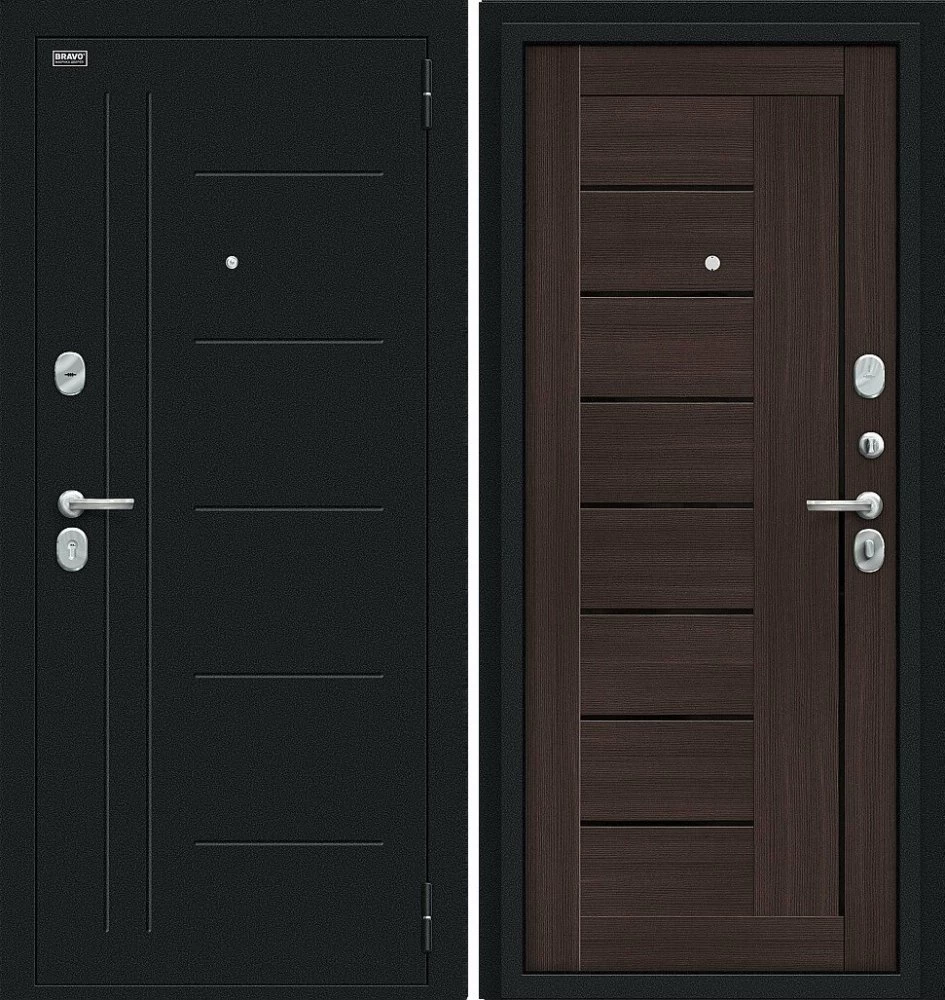 Надежная входная Дверь Браво Проф Букле черное/Wenge Veralinga премиум класса по цене 32 763 руб. Большая толщина стали защитит от проникновения в ваш дом, квартиру или коттедж. Используется очень качественная фурнитура: замки, цилиндры, ручки, защелки. Покрытие и отделка двери изготовлено под внимательным контролем производителя. Дверь имеет долгий срок службы и гарантию.