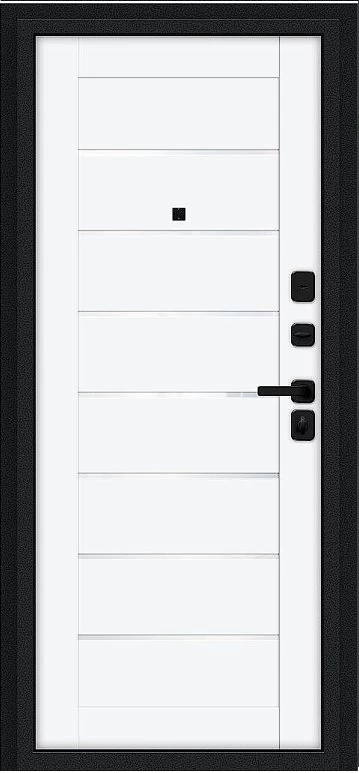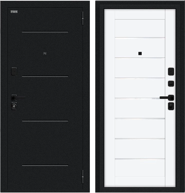 Надежная входная Дверь Браво Техно/SBlack Букле черное/White Silk премиум класса по цене 34 863 руб. Большая толщина стали защитит от проникновения в ваш дом, квартиру или коттедж. Используется очень качественная фурнитура: замки, цилиндры, ручки, защелки. Покрытие и отделка двери изготовлено под внимательным контролем производителя. Дверь имеет долгий срок службы и гарантию.