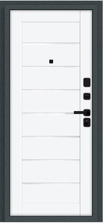 Надежная входная Дверь Браво Техно/SBlack Старк антрацит/White Silk премиум класса по цене 35 813 руб. Большая толщина стали защитит от проникновения в ваш дом, квартиру или коттедж. Используется очень качественная фурнитура: замки, цилиндры, ручки, защелки. Покрытие и отделка двери изготовлено под внимательным контролем производителя. Дверь имеет долгий срок службы и гарантию.